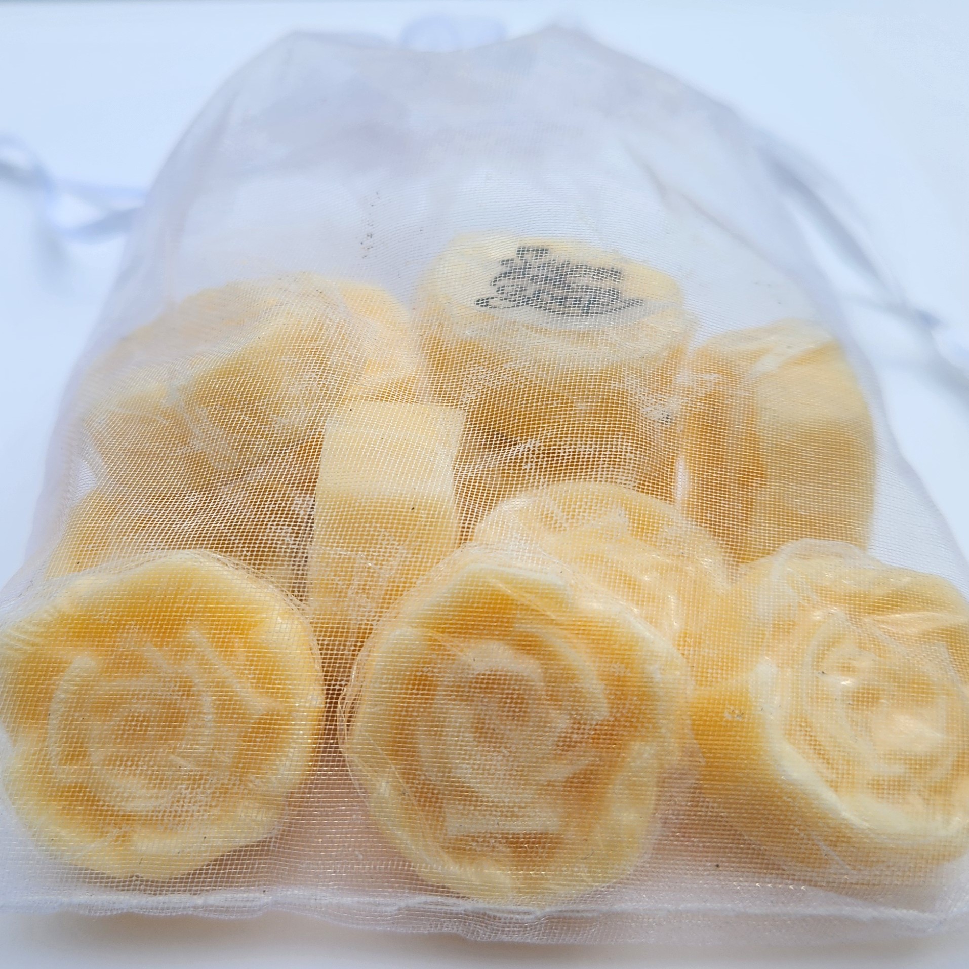 • Each bag contains 12 nickel-sized mini rose soaps