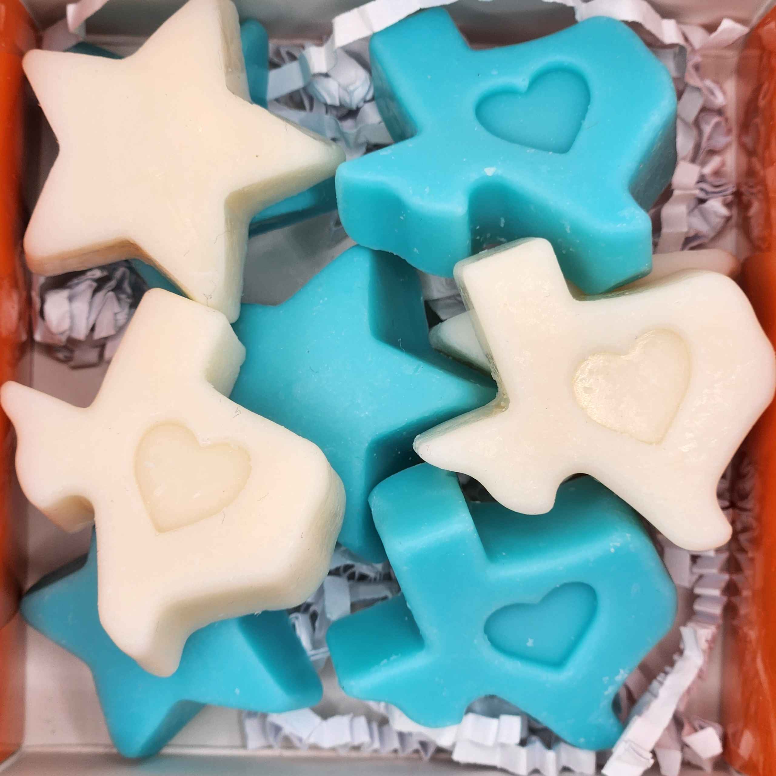Scented with 100% frankincense essential oil paired with Texas shapes and stars shapes.