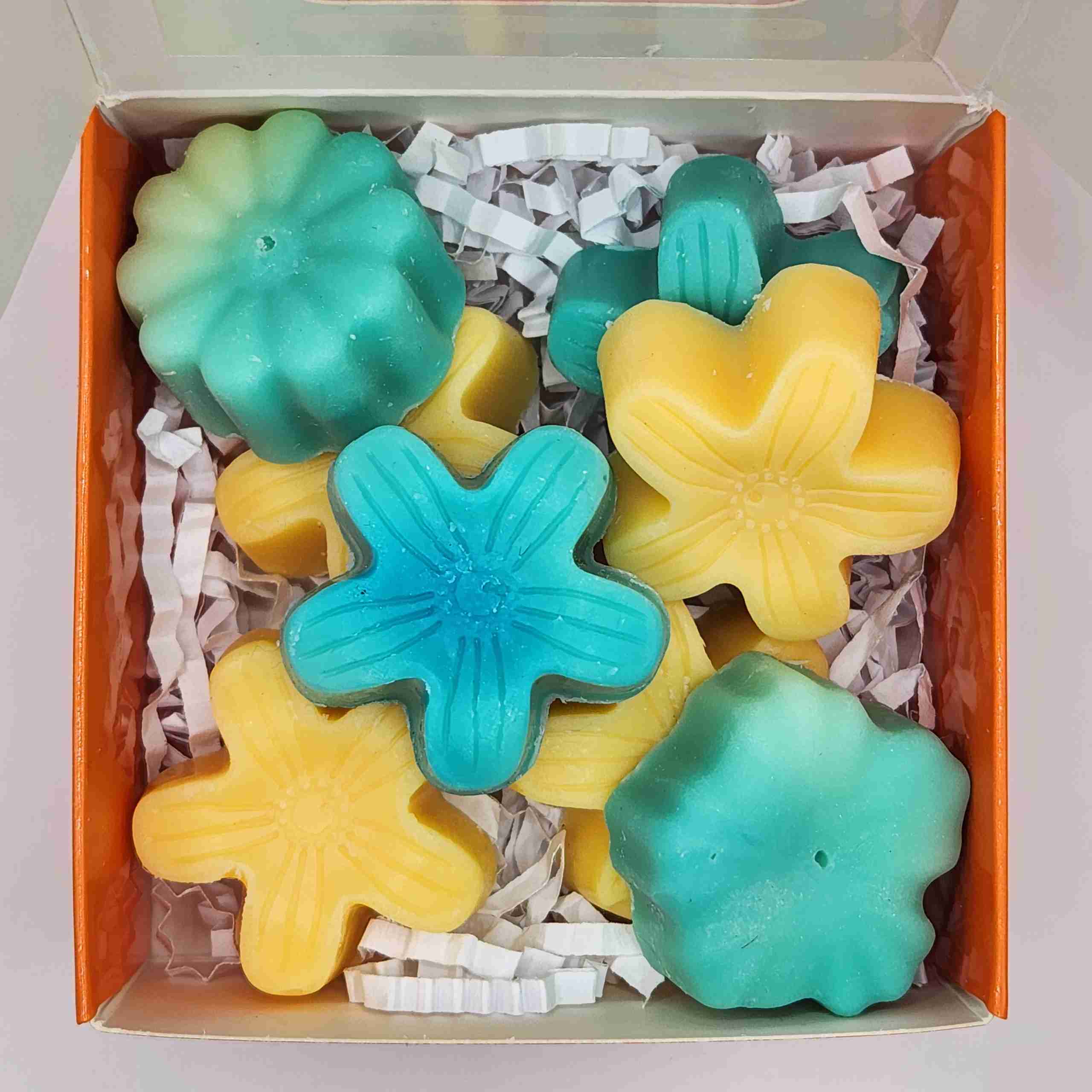 -Approximately 8g per soap. Total weight 60g / 2.1 oz per box